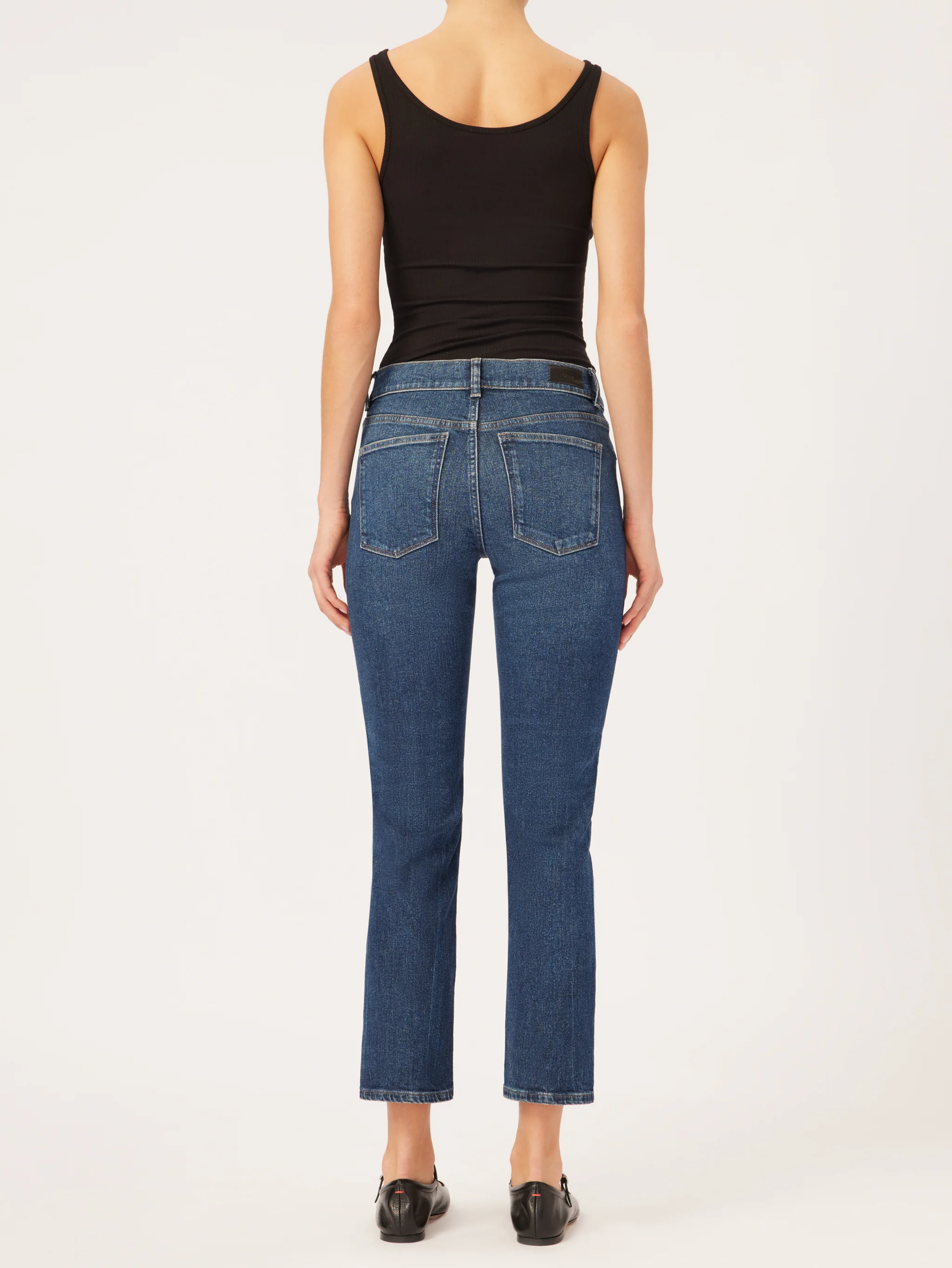 Classic cigarette leg is a must-have for your wardrobe! Mila is a mid-rise cigarette fit with a 28" inseam that is slim through the leg for a flattering and versatile look.mPalmwood is a vintage dark indigo wash with an authentic worn-in look. It features brushed gold hardware, multi-colored stitching, clean hem and a brown back patch.