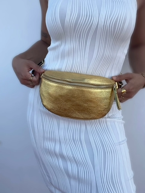Spanish design fanny-pack/ crossbody leather bags. Made in Italy. Adjustable strap allows for wearing in multiple positions.