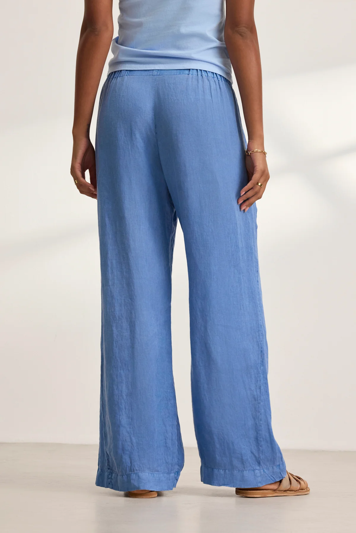 From Velvet's Cleo Wade Spring 2025 Collection. Crafted from lightweight woven linen, these full-length pants offer an easy, relaxed fit. The elastic waist ensures comfort, while the wide-leg design creates a flattering, effortless silhouette. Slash pockets add practicality, making these perfect for warm weather or relaxed styling.